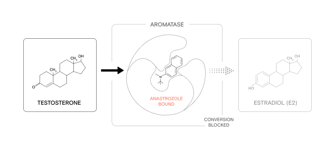 Anastrozole blocks the enzyme that converts your testosterone into estrogen. Less bloat. No man boobs. More of what you're paying for.