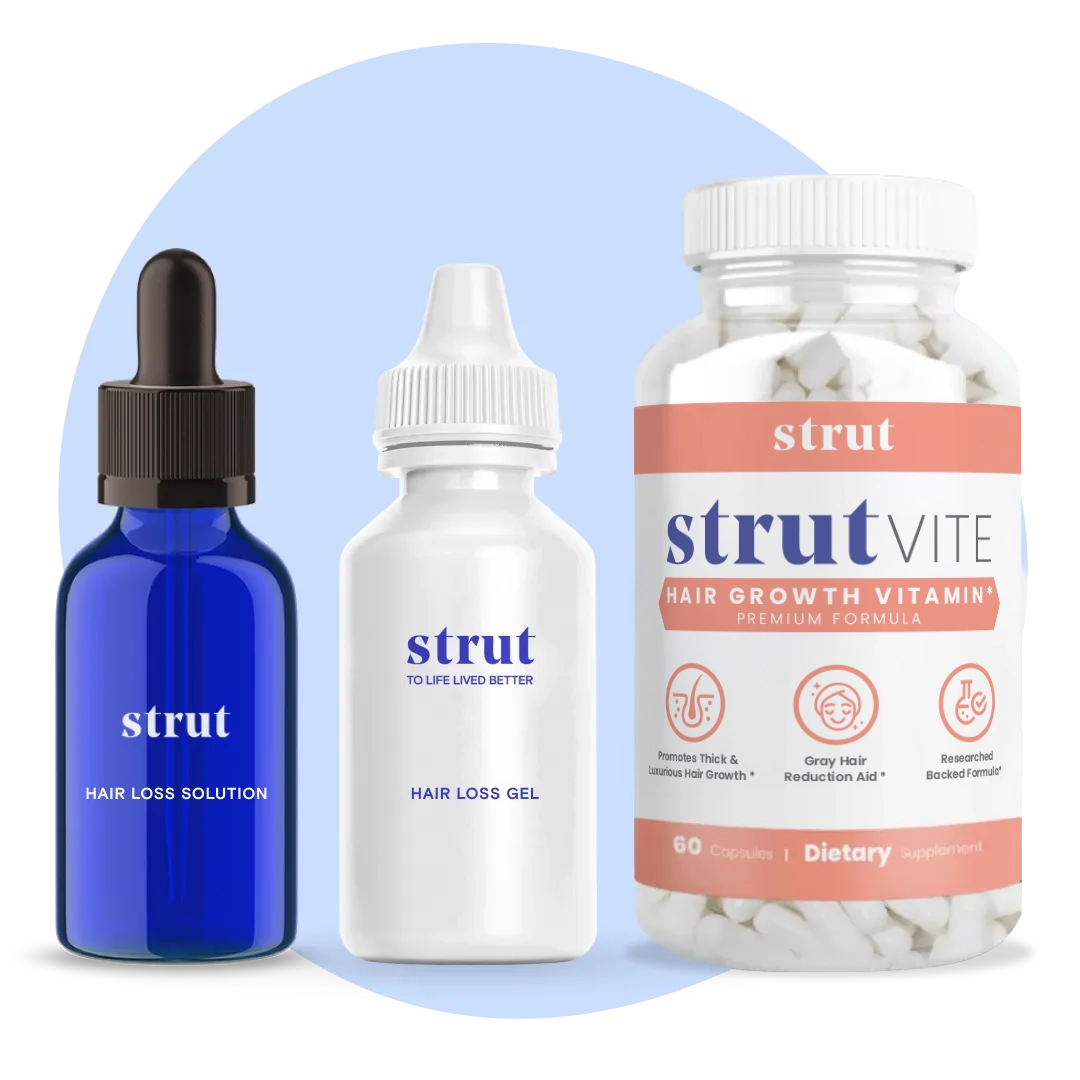 Up to 50% of men may experience male pattern hair loss by the age of 50. While most hair loss is hereditary, you can still utilize medications to help slow the progression and help retain your current hair. At Strut, we offer customizable male pattern hair loss treatments that think outside of the box. By utilizing the power of pharmaceutical compounding, we are able to offer you formulations with multiple active ingredients to give you the best possible results. Your hair loss treatment, your way.