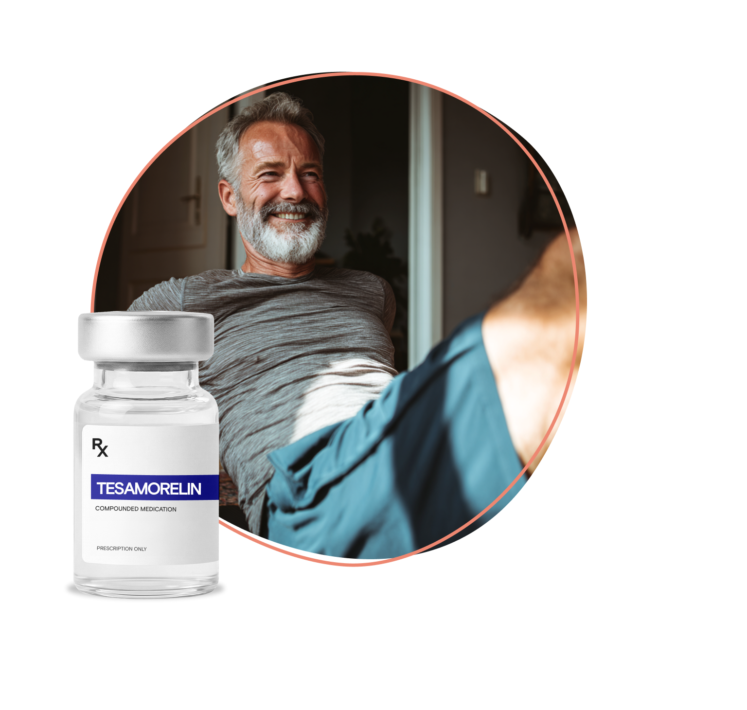 Tesamorelin is a growth hormone-releasing peptide potentially showing a significant reduction in visceral fat. It does not replace your hormones. It signals your body to produce more of its own. Targeted. Measured. Effective.